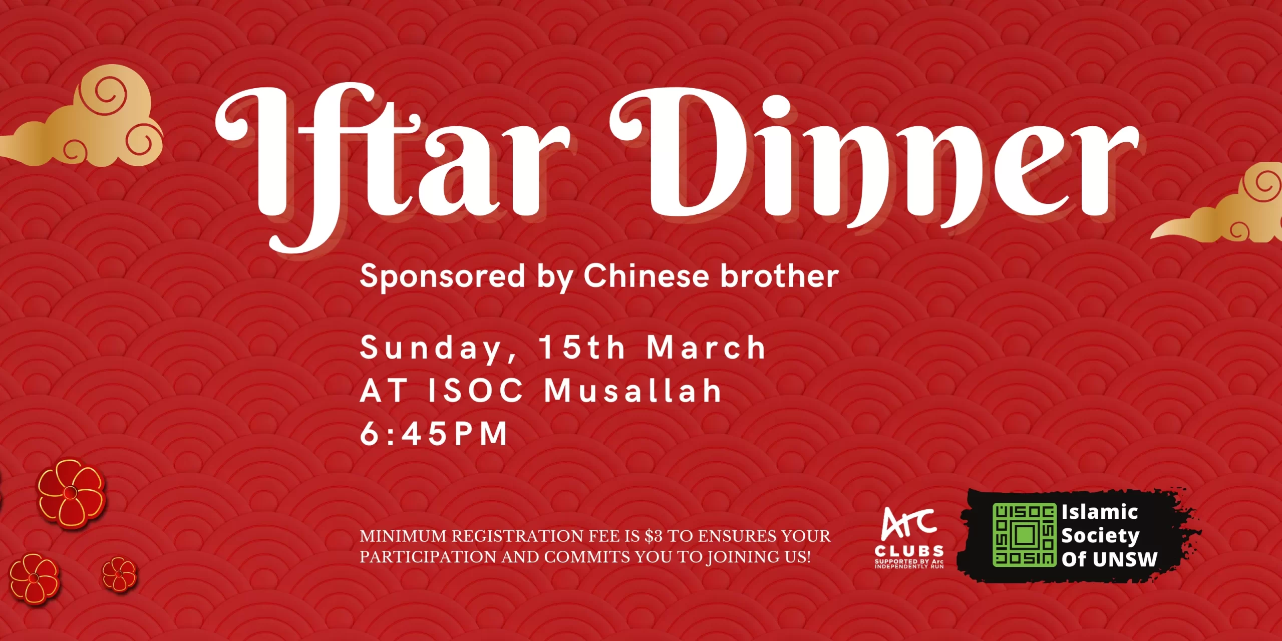 Join ISOC UNSW Iftar Dinner by one of our Chinese brother from the ISOC community as we come together for an evening of community, reflection, and shared tradition.